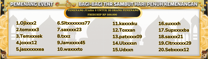 3. Hadiah juara 1 wajib Deposit dengan kode unik yang diberikan oleh admin official dengan rekening yang terdaftar pada Username / id , untuk validasi kepemilikan akun